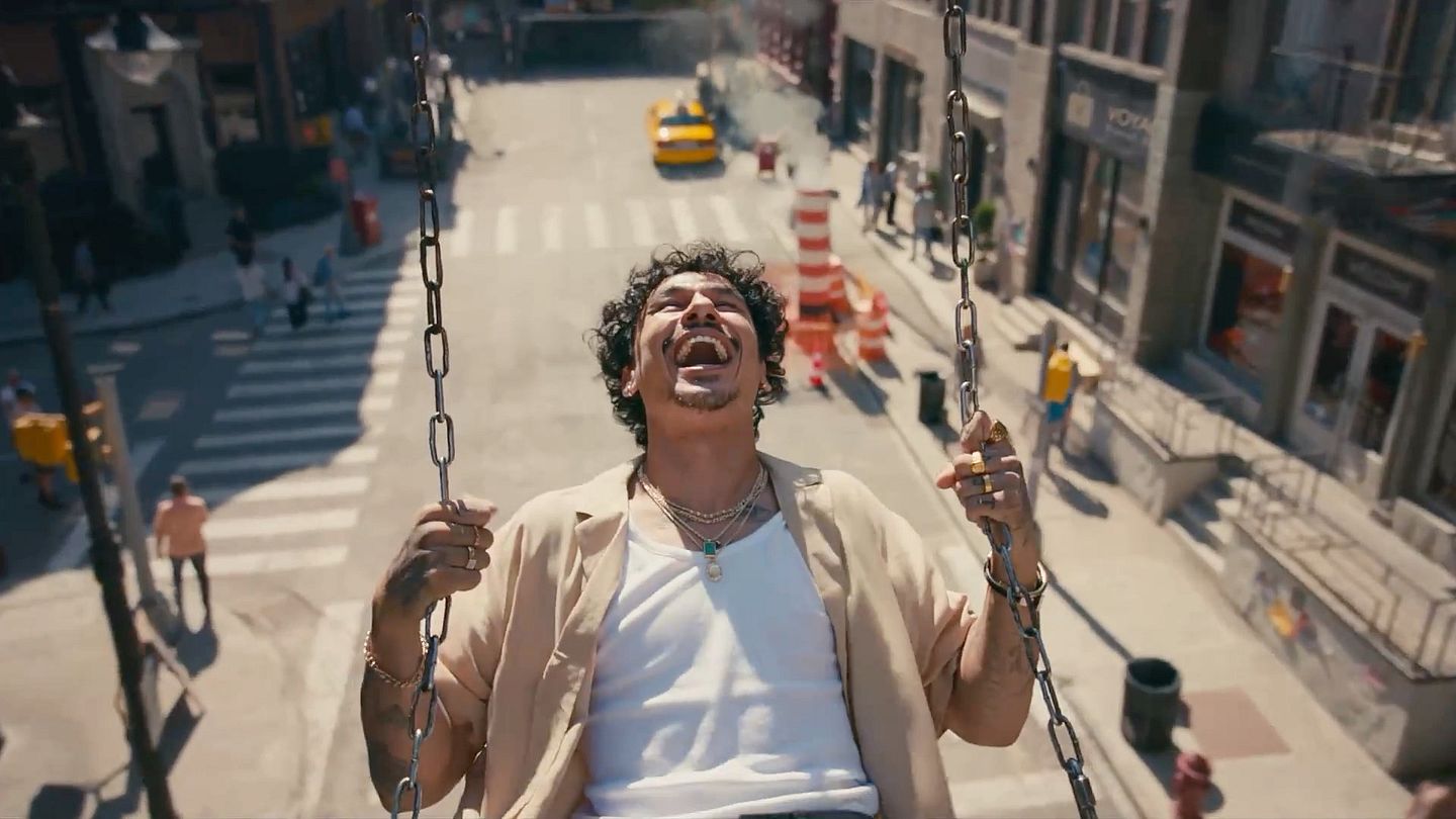 A man swings off a giant crane in this spot for Papaya.